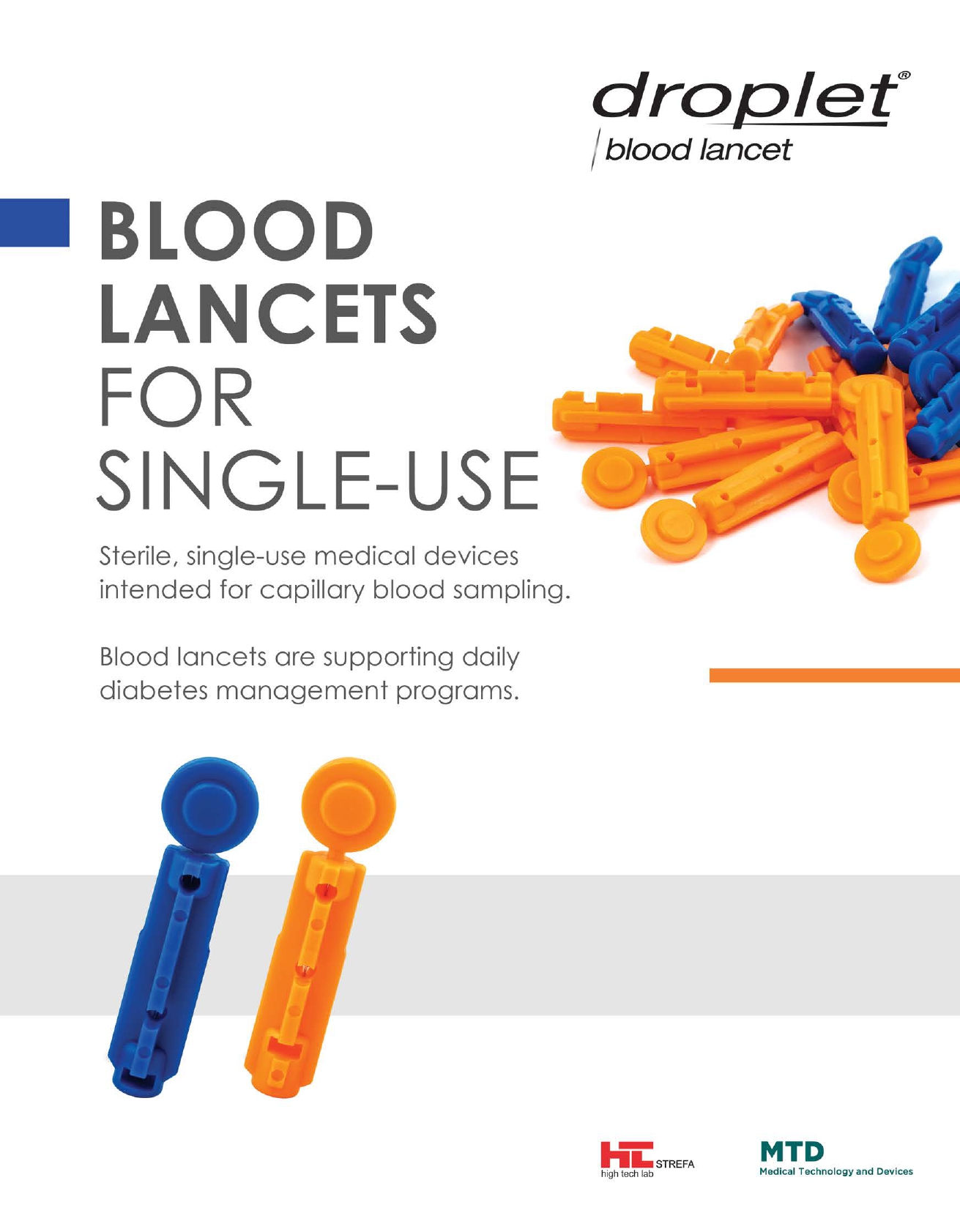 droplet® – The Blood Lancet for Single Use is a sterile, single-use medical device intended to be used with a lancing device for capillary blood sampling. Intended for lay users.