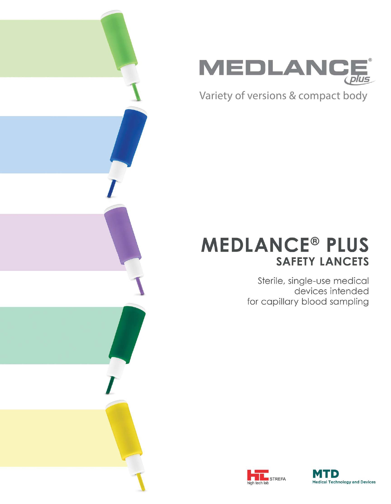 Lancety bezpieczne (nakłuwacze) Medlance Plus to sterylne, jednorazowe wyroby medyczne przeznaczone do pobierania krwi kapilarnej przez przez personel medyczny.